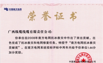 全國電線電纜產品質量監管AA級企業,全國重合同守信用單位,廣西“二十五”電線電纜產業重點扶持企業,國家強制性產品CCC認證